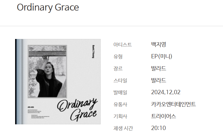 오랫동안 기다렸던 가수 백지영이 드디어 새 미니 앨범 Ordinary Grace의 타이틀곡 '그래 맞아' 로 돌아왔습니다.
