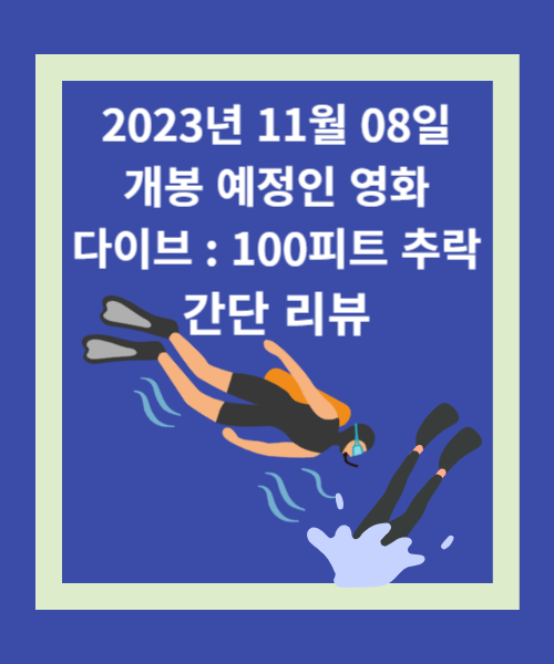 오늘은 2023년 11월 08일 개봉 예정인 영화 다이브 : 100피트 추락에 대한 간단한 리뷰를 해보려고 합니다. 약간의 스포가 있을 수 있음을 미리 알려드립니다. 이 영화를 한국에서 개봉 전, 운좋게 먼저 만나 본 저는 굳이 영화에 대한 평점을 주자면 7점을 남기겠습니다.