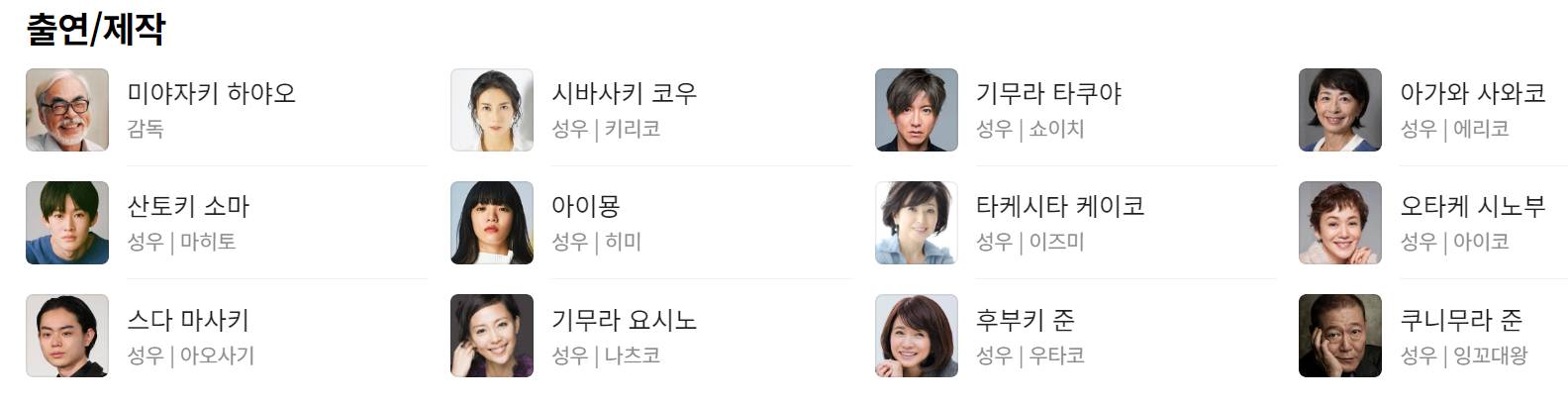 2013년 영화 '바람이 분다' 이후 10년만의 복귀작 입니다. 한편 미야자키 하야오 감독의 대표적인 작품으로는 우리가 많이 알고있는 하울의 움직이는 성(2004년), 이웃집 토토로(1988년), 천공의 성 라퓨타(1986년)등이 있습니다.
