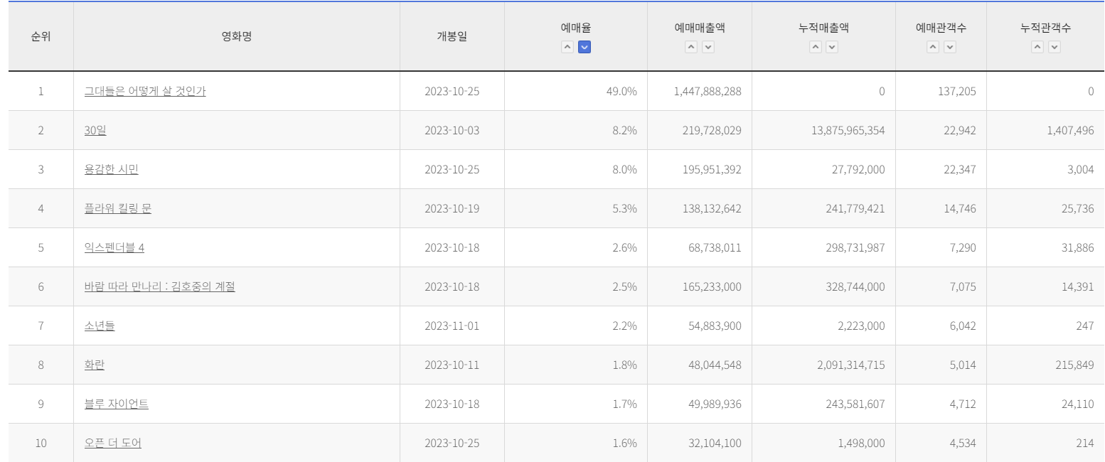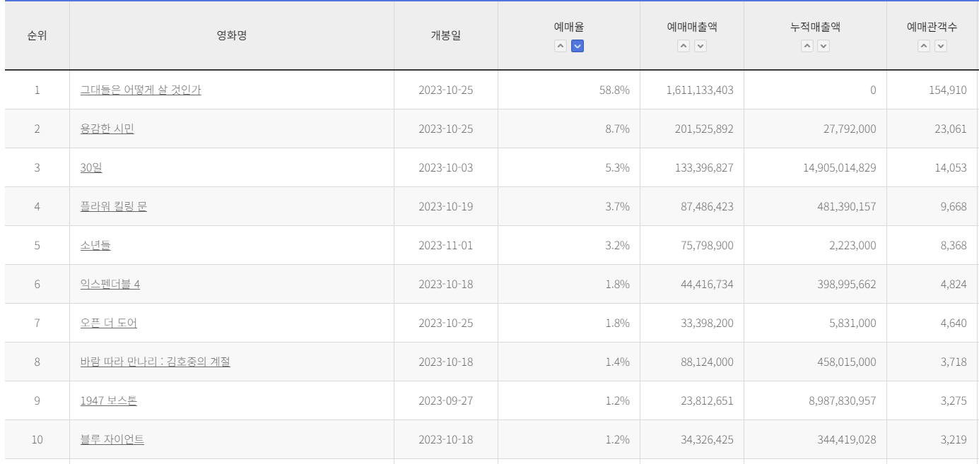 - 영화 예매율은 계속해서 변동되며, 지역, 극장, 상영 일정 등 다양한 요소에 따라 달라집니다.