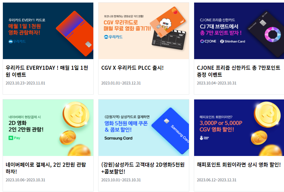 ※ CGV에서 제공하는 영화 할인혜택과 이벤트 내용